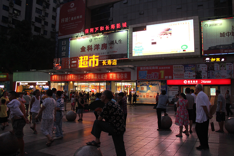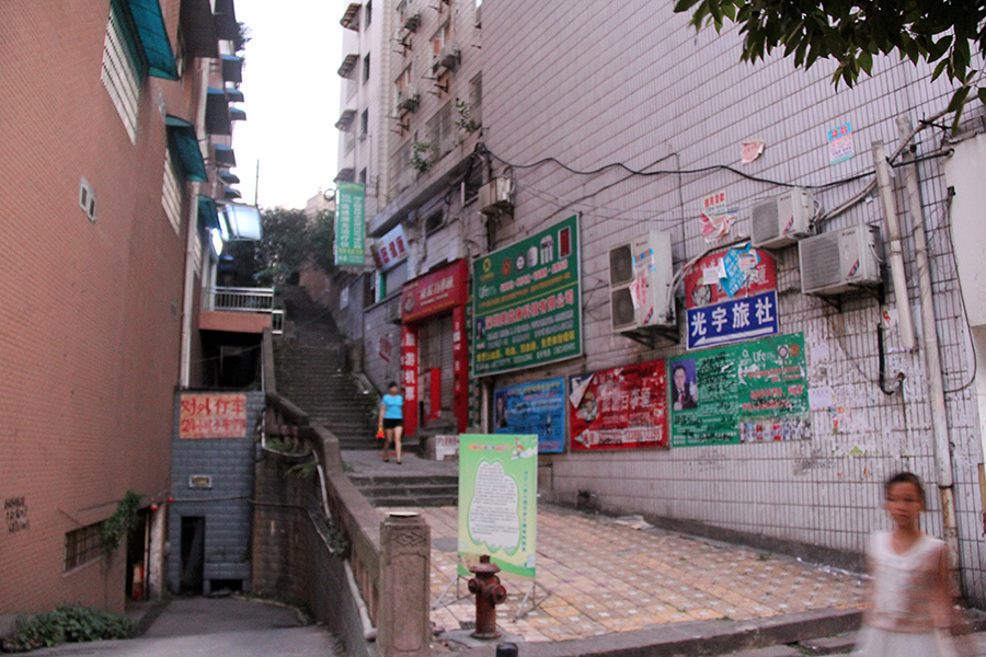 after work i finally went with "huey" li the IT guy (that's the english name he asked me to pick for him, the closest match to his chinese name) to the older, more original part of changshou, known as the old city. we rode the company shuttle bus all the way back to the station in the old city. changshou sits along the banks of the yangtze river so much like chongqing, it has a storied history as being a shipping town. because of its already established infrastructure on some pretty hilly terrain, the old city remains relatively unchanged, with all the new buildings being erected in the nearby new city (where i live). people don't often come to changshou because frankly there really isn't anything here. but because of the lack of visitors, the place has an air of authenticity perhaps lacking in some of the more affluent and gentrified cities.