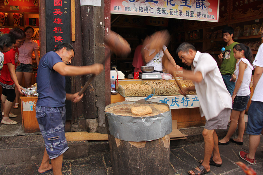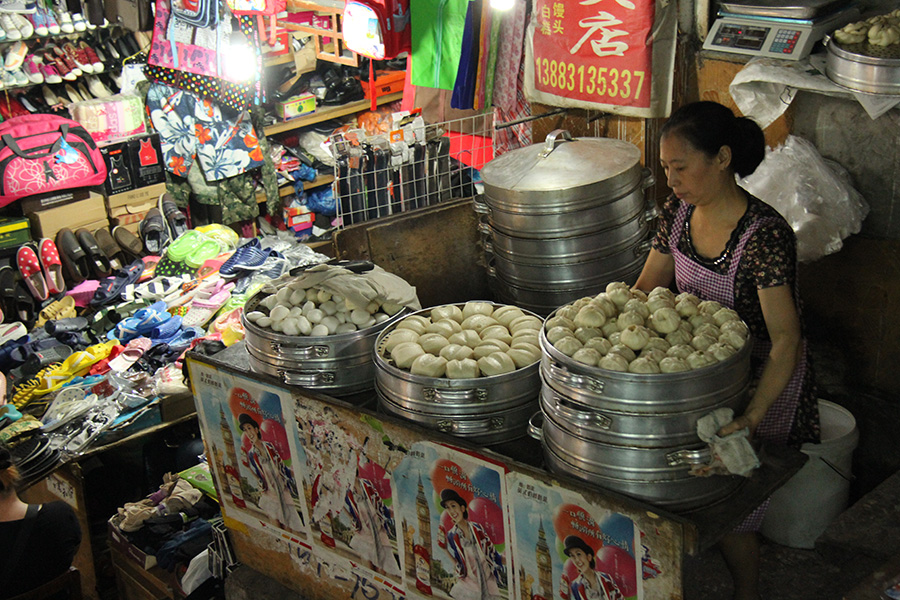 in chongqing we arrived at the bus station next to the hongquhegou subway station. it was only 9:30 and huey asked if i was hungry. we ended up going to his mother's noodle shop on honghuang road, which is actually fairly close to the bus station but we ended up taking a taxi.