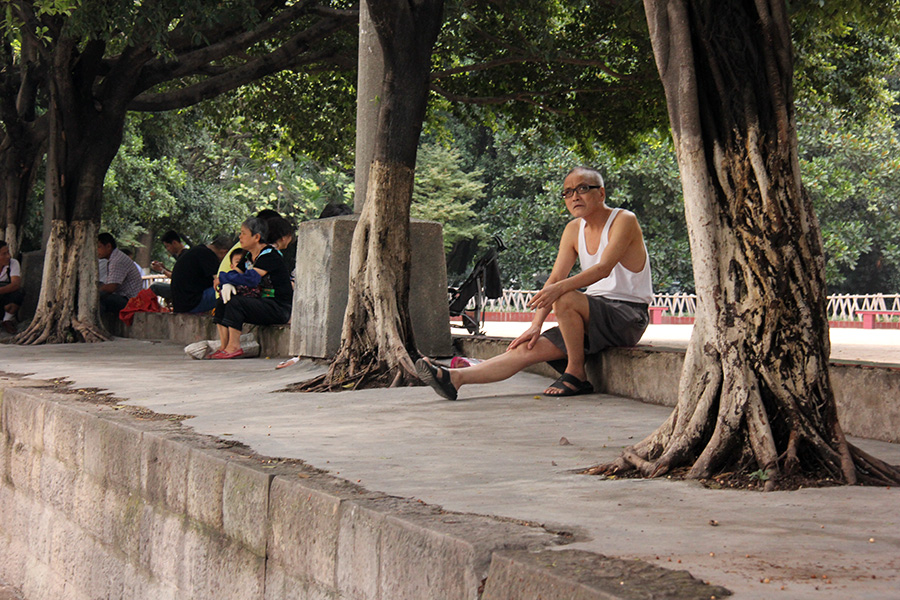 i woke up at 7:00 to meet huey at our usual bus stop at 8:15. i got up with a cough which made me wonder if i caught a cold. i left the apartment early to see if i could find a convenience store that sold cough drops. i ended up going to a small smoke & liquor store, the lady storekeeper very happy to help me find some throat lozenge. i got another box of "run hou tang" which is like chinese ricola, a mixture of natural herbal ingredients, and tastes like grass jelly. i also bought a bottle of water. i was worried huey would arrive late but he arrived right on time, wearing shorts. i noticed he wasn't carrying anything and i asked him where was his pentax dSLR. he said it was too heavy to carry around, which told me everything i needed to know about his level of dedication to the craft. "besides, you have your camera," he added.