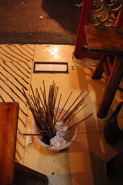 when we were done eating, they counted up the total number of skewers to come up with the bill. including the beers and bowls of rice and the additional of smoked spareribs, the check was just RMB$198, around US$32, not bad. original lihui (huey) was supposed to treat, but i got the sense he was feeling pinched in the pocket. even on the bus ride into old changshou, he was saying how he wasn't going to drink, which i interpreted as an attempt to make the evening cheaper. i should've told him earlier i was planning on treating. normally i'm quite the cheapskate, but last night my parents reminded me that i make 4x as much, so i really should be treating every single time. lihui seemed relieved to be off the hook, said he'd treat next time.
