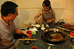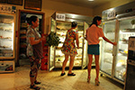food selection is self-serve, as you visit banks of glass door refrigerators, picking out what you want to cook. everything from various cuts of meat (beef, pork, lamb, smoked sausages, fish) to vegetables (sweet pumpkin is the best) and mushrooms and specialty items like fish balls or quail eggs. each skewered item costs RMB30¢, with the more expensive items on shorter thicker skewers that cost RMB$1 each.