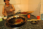 the hot pot bowl resembled a pincushion of skewers. chuan chuan hot pot is inherently a messy affair, and i ended up splattering hot oil onto loren and he himself splattered oil all over his khakis. i had on my black pants this time so i wasn't as worried, but still concerned i might stain my white shirt (i was tempted to strip it off and eat in my tank top undershirt).