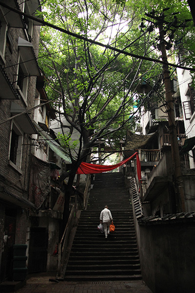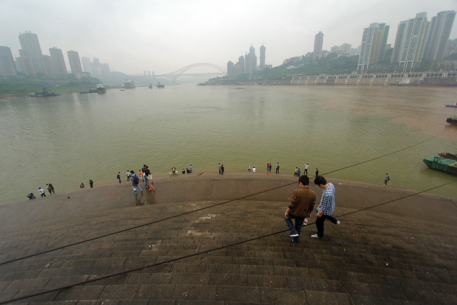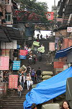 it's funny, but i wake up earlier on the weekend that i do on weekdays. i was up by 6:22. i did go to sleep (pass out) around 10:30 last night, so that gave me about 8 hours of sleep. i didn't wake up with a hangover but i was groggy and quickly drank some water to replenish my fluids. my plan today was to go hang out in chongqing, first do some sightseeing during the first half of the day, then go shopping afterwards. i wanted to see chaotianmen, which is the dock area at the northeastern tip of chongqing peninsula, the confluence of the yangtze and the jialing river.
