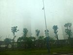 it was foggy this morning, but at least it wasn't raining. by the middle of the day it was clear enough to spot in the half moon in the sky and for the temperature to get hot and bright enough that people were once again reluctant to leave the confines of the office.