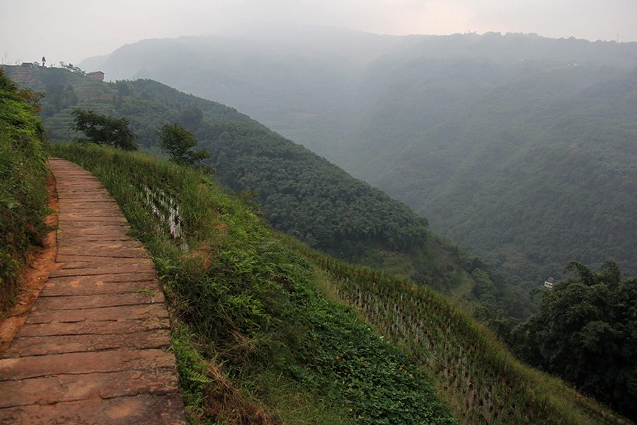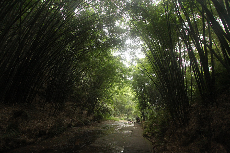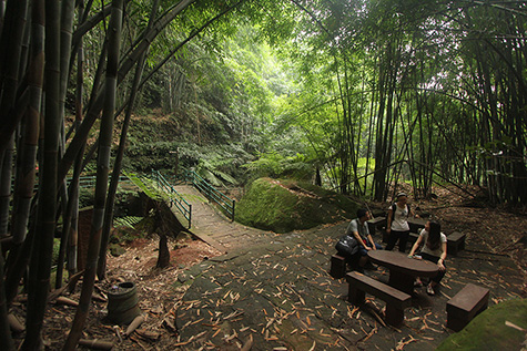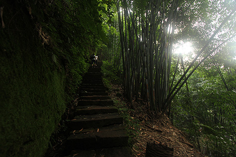 fy buys green oranges, immediately regains her energy. She wants to buy a black chicken (wu ji) but they're too expensive (rmb$270 based on weight) and the ones we saw at the farm aren't entirely black (they have red combs and wattle). Guo and zk take slide 600m while I walk down with fy (500m or 1500m, hard to tell with the defaced signage)