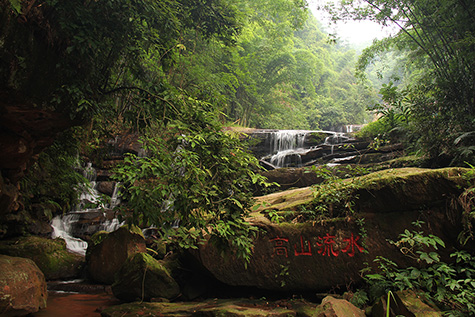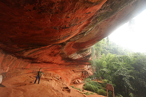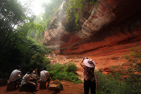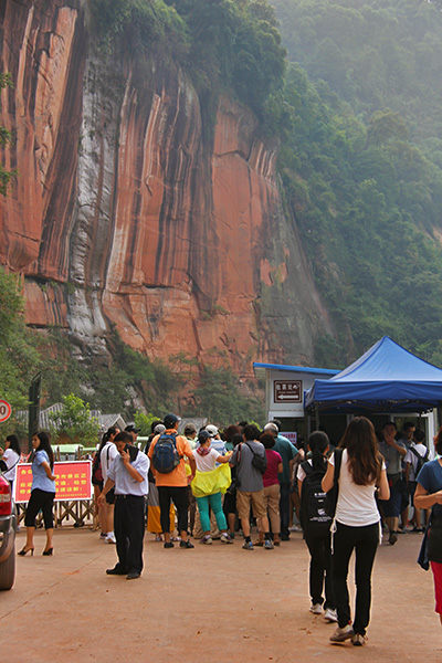 Danxia: rmb$40/person. We go the longer way which is pretty much empty, populated by fiberglass dinosaurs at the start of the trail, then a series of waterfalls of various sizes, culminating in a carved buddha head at the top of the falls.