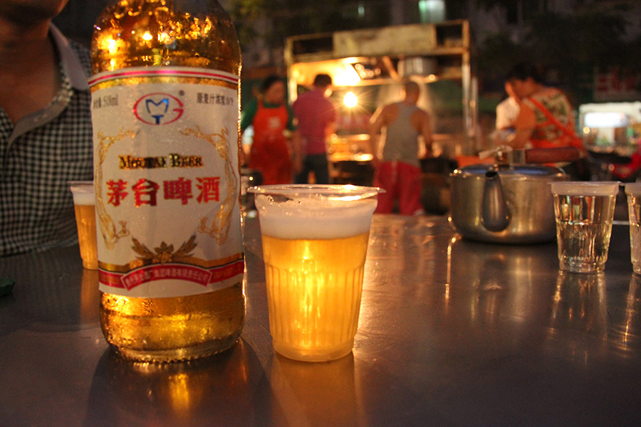 Dinner we have shaokao outdoors famous place in chishui. Main course is fish with douhua, which I don't like so I only eat a little bit. Weird throwing stuff on the ground.