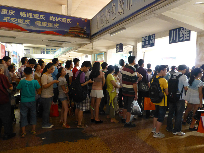 We wait in the station for zk's boyfriend to get from the airport to the hongqi bus station.