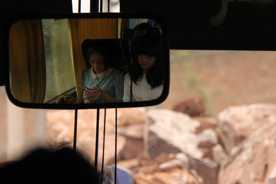 There is some mild congestion but nothing as bad as our trip to chishui. The bus is empty at first, but fulls up as we pick up passengers along the way, China style.