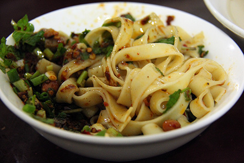 I get spicy douhua noodles. A few things wrong: I consider douhua a dessert, it's hard to pick up using chopsticks, and eating spicy noodles in the morning hurts my stomach. Everyone else seems to like it. Douhua noodles rmb$7 for 2liang. I also give gou and zk loperamide because they both have upset stomachs.