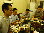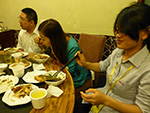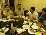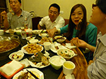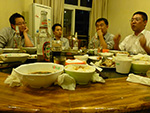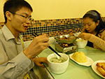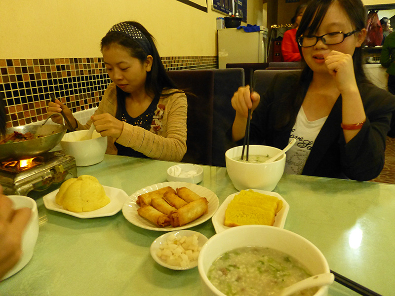 lihui and i were the first ones onboard the bus. he was have a very animated playful argument with some girls and ended up inviting them to dinner as well. one of the girls he was talking to was the same girl i spoke japanese to a few days ago. i've been hoping for an opportunity to be fully introduced. she came with her roommate. not only did they go to high school together, but college as well, and now they're roommates working at the same company. turns out they're both from the greater chongqing area, close to hubei. the rice porridge was good, a change of pace from the normal cafeteria food, but still on the slimy wet side. lihui ended up treating.