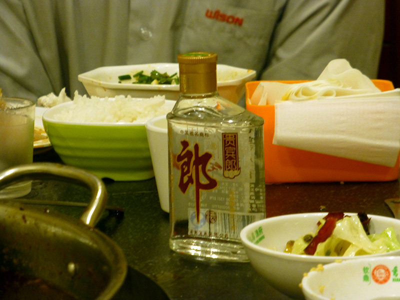 after that dinner, i went to a convenience store and bought a small bottle of bai jiou (RMB$12). the store owner said it was too little a bottle, i told her it was just a gift so i wouldn't arrive empty-handed. i then called fengya asking her where they were. she told me to head to the agriculture bank. when i got there, i didn't see any restaurants. that's when xiao called me. he actually came out to look for me. after some phone negotiating, we finally found each other and he took me down a street i'd never been before, lined with various restaurants.
