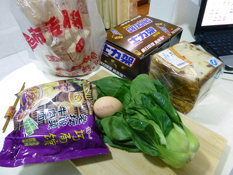 at the chongbai supermarket i bumped into arnel, the filipino who delivered my house key 2 weeks ago so i wouldn't have to make a trip back to the office to get it. he was looking to buy some chocolates for when he goes home on his vacation at the start of october. he wanted to get a box of snickers but couldn't figure out the price. since he can't speak chinese, i told him i'd help him out. turns out there's no discount if you buy a box, it's just the unit (RMB$4.90) price x16. he decided not to get it, but instead buy the chocolate assortments at the weighing station. as for me, i got some eggs, a piece of baby bokchoi, a package of ramen, some canned congee (for the office), and a cube of raisin bread. i also checked out prices on thermal underwear. since a lot of houses here don't have indoor heating (cement apartments too), people are used to wearing thermal underwear during the winter to stay warm. they average about RMB$100 for either a top or a bottom. i'll need to pick up a set before heading out to western sichuan.