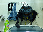 i could've gone running but decided to stay in and relax for a change. i washed the clothes i wore today, and later did another load of laundry where it was just my regular bag. it's really just the strap that needs washing, since it sweats like acrid sweat, but i decided to just wash the whole thing. the laundry water at one point looked all muddy, i guess that bag was dirtier than it looked.