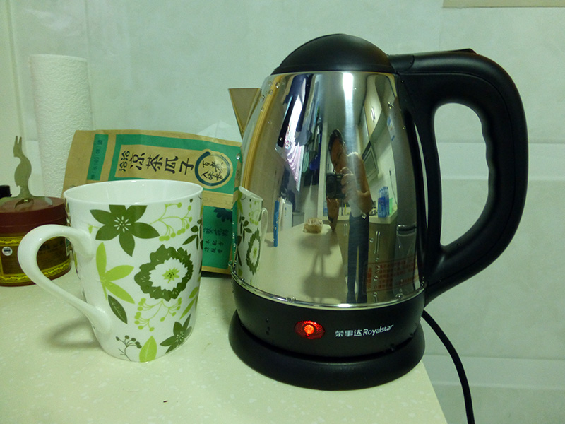i tried out the electric tea kettle when i got back to the apartment. it works fine, i didn't notice if it was any faster than my american electric tea kettle, but i imagine it is since it uses 220v instead of the US 120v. i made myself a cup of sweet babao tea.