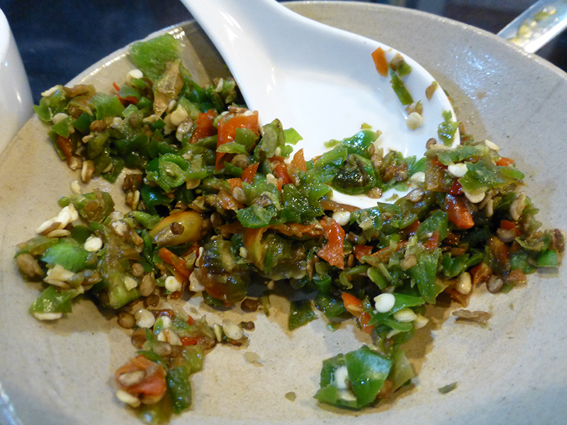 sometimes they offer some pretty weird dipping sauces for hot pots, anything from dried hot pepper powder to sesame oil. this hot pot had a dipping sauce more to my taste, chopped cilantro with a cube of fermented tofu mixed together with some spicy hot pot broth. the lamb was okay, but i could've gone for more. i probably could've also ate a small bowl just by myself (maybe next time!).