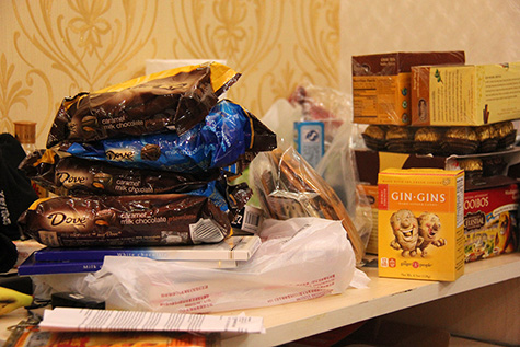 after lunch i was in a better mood and asked fengya if she wanted to see what was in the box. it was mostly chocolate (heaviest) and tea, and some clothes. i also requested some halloween decorations to spruce up my cubicle area on the last week of october. i gave fengya a bag of dove chocolates and a box of ferrero rocher. she expressed her heartfelt thanks via QQ.
