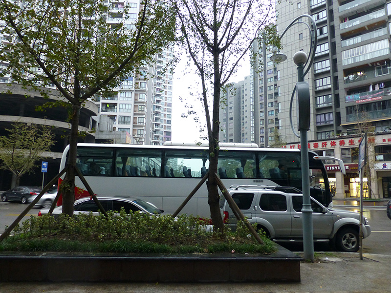 i guess that's a good thing? or maybe people simply just don't care. seating on the medium bus is a little weird: single seats one side, double seats on the other, and a row of seats in the back. it's nice to grab a single seat because i don't have to share a row with anybody else and i can be lost in my own thoughts for the 25 minutes it takes to drive to the office. i was ready to relax with some diana ross except i left my earbuds at home. instead i was flipping through my lonely planet guide (like i did this morning, standing in the doorway, waiting for the medium bus to show up), reading up on the section about western sichuan. that really pretty girl didn't take the medium bus today, opting instead for the small minivan. she wore red pants. i love red pants.
