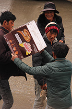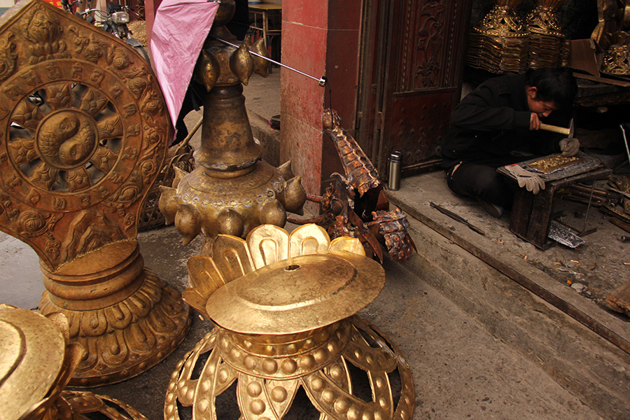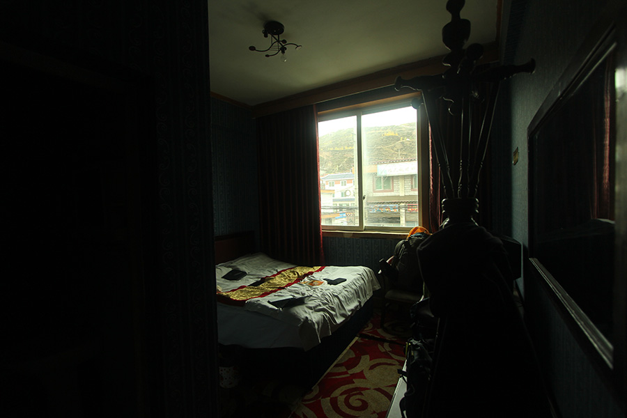 i finally got myself together and left the hotel room. first order of business: change my room from a double to a single. the single room turned out to be just RMB$100 (US$16). the room was smaller but brighter. the best part: a large window facing out onto busy dajintan road, right across the street from the bus stop entrance - a photographer's dream! i could probably spend days just sitting here and looking out the window, watching tibetan life go by.