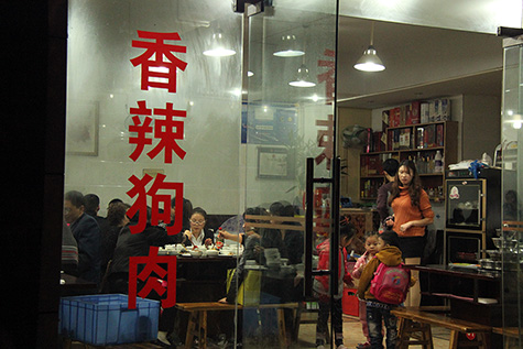 after work i met loren for a walk. maybe not my first choice for a nocturnal strolling companion, but anything to get out of the house. he lives even farther away than fy, and i waited for him on the street corner where he lives. i was already so hot when i arrived, i stripped down to a t-shirt. i got a chance to wander around his neighbor, which has a few unique restaurants, including apparently one that serves dog meat. i will not be eating at that restaurant, dog meat is where i draw the line.