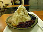for dessert, i got a big bowl of shaved ice along with red beans, grass jelly, sweet potato (?!), and doughy nuggets (tapioca?). the cone of shaved ice reminded me of tibetan mountains. it was pretty good, but weird eating that stuff when it's kind of a chilly night. i like the chewy nuggets the best, maybe next time i'll just get nothing but that with the shaved ice. the bowl was big enough to share between 2 people but i ate the whole thing myself. later the owner asked if i was here on vacation. i told him i was in changshou working, and that i'm from taiwan. i don't think he heard me correctly because he didn't say anything, even though this is supposed to be a taiwanese restaurant.