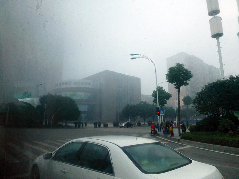 it was very foggy this morning. i had my hot tea and my one piece of cake. shirley appeared, eating the last of her meat buns.