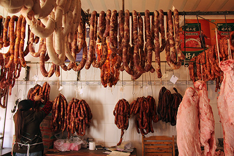 i doubt that anyone else from my office does more in a single weekend day than i do. in the morning i went with mrs.gu to visit a market day (赶集, a lively combination of farmer's market plus flea market) in the rural town of shuanglong (双龙 "double dragon"), about an hour-long bus ride east from changshou. after coming back into town, we had guizhou noodles for lunch (mrs.gu's treat) before we parted ways. i went to go take some shirts to be altered and visited the produce market to buy a medium chinese kimchee jar for RMB$15 (US2.50). i then immediately cracked the jar when i came home because i had the bright idea of pouring boiling water into the thing to sterilize it. but before i had time to buy a replacement, i went to old changshou to mail off some books (traveling, cooking) and tibetan souvenirs back to the US. i figured the nearer post office would be okay, but turns out they don't ship internationally either, so i had to take another bus into changshou plaza to visit the larger post office. there it took me more than half an hour to finally send out my stuff (close to RMB$160), before i caught a bus midway into town. i got off here so i could get some food from the dongbei bread shop. i then proceded to walk home, visiting a chinese version of the dollar store and picking up a brush (for cleaning out my tumbler) and some dish rags. back in the new city, i returned to the produce market and bought another kimchee jar. the only thing that would've made the day even more action-packed would be if i went for a run and then ate out for dinner.