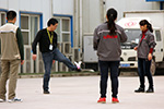 after lunch i went out with romeo to give him a few tips about using his new canon dSLR camera. i taught him about aperture priority mode, then we exchanged lenses. i let him use my 18-200mm while i tested his 50-250mm. we practiced some shots outside before returning to the office courtyard to walk some coworkers playing chinese hackey sack.