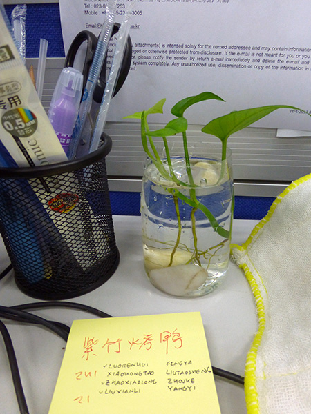 i saw xiao shen - my not so secret admirer - changing the water on a potted plant. she ended up asking me if i wanted it so i took it.
