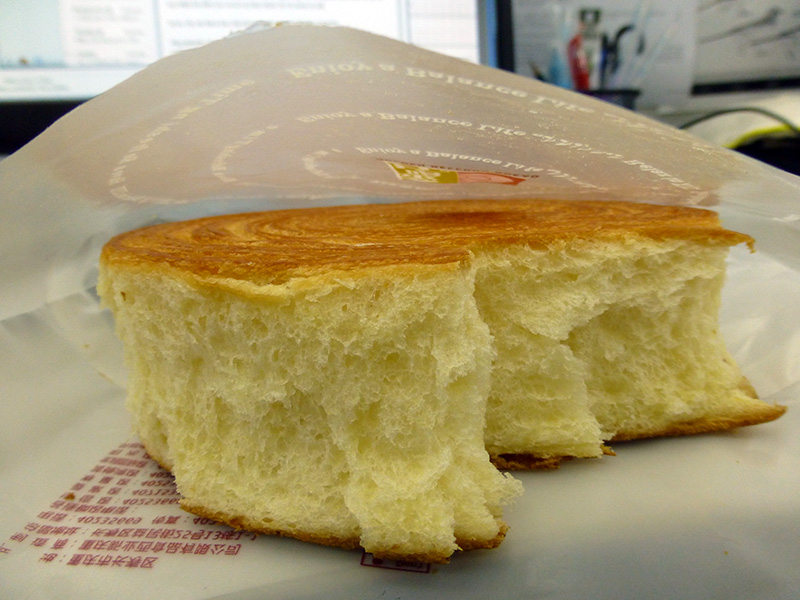 zengfei and were chatting this morning like we already knew each other, even though we've never been formally introduced. does she even know my name? she wore the same outfit she wore yesterday, i didn't mind the encore. she and her roommate were having some sweet buns for breakfast (sesame paste inside). our regular meat bun place was closed again, this time with a sign saying they're renovating (not sure why they need it, business is very good, people don't go for the ambience). i bought a big wheel of bread from the nearby western-style bakery, something called a "record cake" (RMB$9) because it's shaped like a record. for that price i was expecting something delicious but it was just bread.
