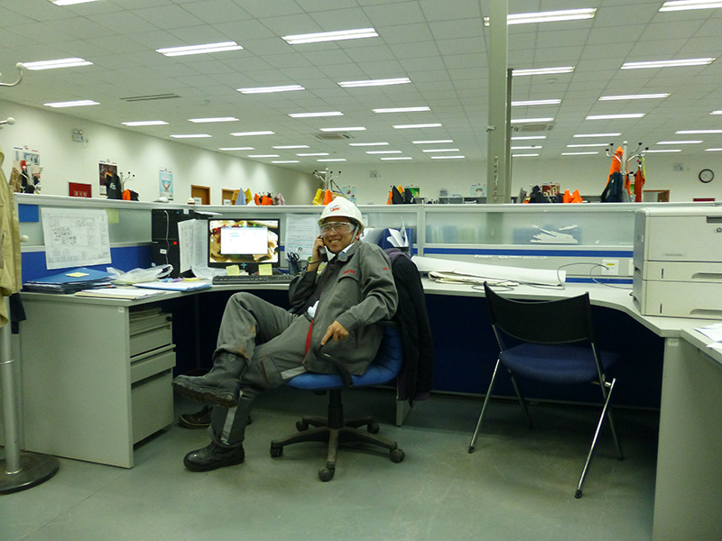 * my first time out on the construction site: picked a day so foggy we could only see the buildings immediately in front of us; went with loren with our tour guide xiao. biggest thing i never realized was just how dirty the site is; that native red dirt turns onto red mud when wet, getting onto everything.