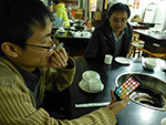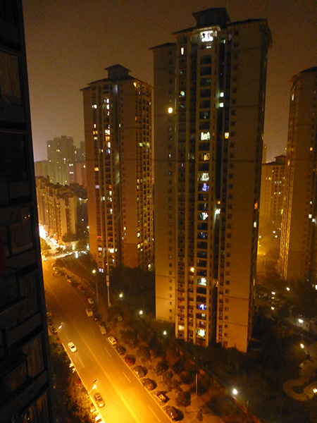 afterwards loren invited us back to his apartment, where lihui unlocked loren's high security company laptop so he can transfer files onto a backup drive before he leaves the project. i shared some chocolate from my care package. the view from the 15th floor was pretty spectacular, the apartment wasn't bad either. i was tempted to move in after loren leaves. i told lihui would could probably move in together because xiaolong - loren's roommate - would probably want to switch places with me since i live in a single apartment. lihui and i left shortly after, walking home, with me carrying my care package box.