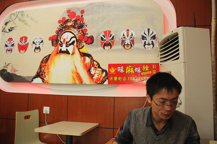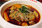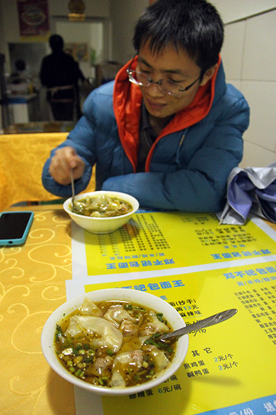 afterwards we walked to yangjiaping, yet another chongqing commercial plaza, this one located southwest of the city center. yangjiaping is cool because the elevated tram actually crossed over the square. we had a late lunch, 2.5 lbs. of weigh-your-own ma la guo. we then went to lihui's mother's wonton shop (she left before we arrived around 4:30, didn't realize we were visiting since lihui didn't call) for some wontons and some tangyuan for dessert.