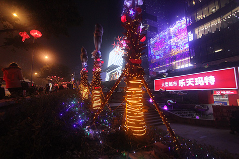 * take subway to jiefangbei - come out a new exit, discover a crazy KTV-bar-entertainment section of JFB - some random girls asked to me take their photos, then some other random girls were eyeballing me thinking they might recognize me * had some taiwanese fried chicken nuggets from a food truck - told the girl i was from taiwan, she said her boss is taiwanese - RMB$10 actually pretty authentic yianshuji