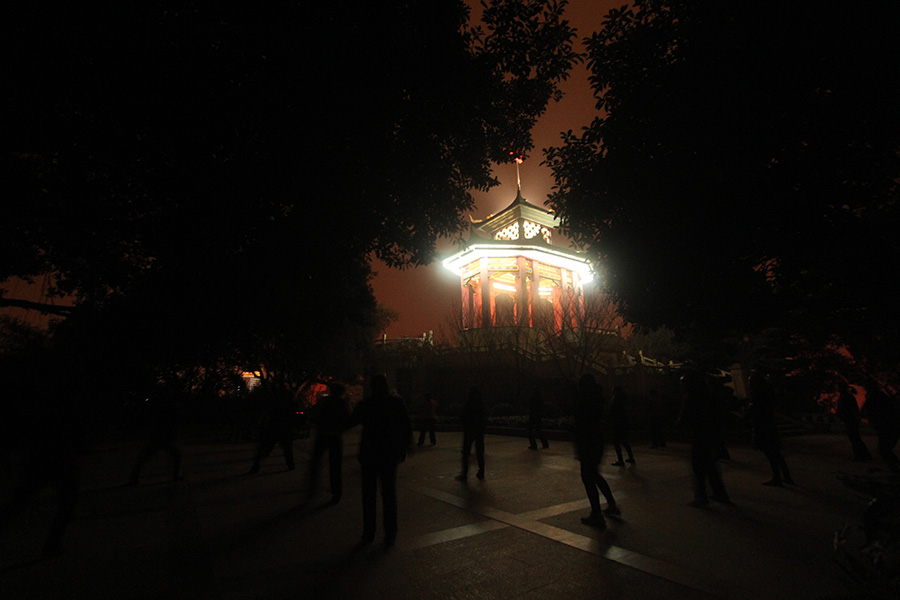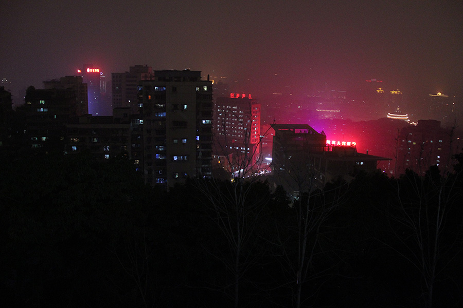 * take the subway back to qixinggang to check out chongqing at night from pipa mountain - luckily i went there earlier because the place has no lights, navigate in the dark from the glow of the hazy sky - still can't quite see anything