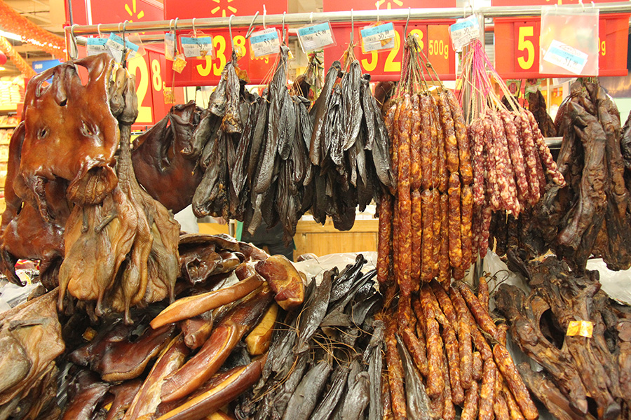 even though i was already quite full, i still wanted to find that KFC. so i continued a little bit more, turning a corner to find my KFC. i decided to get a little fried chicken, and just so happens they had an afternoon special of 2 pieces of chicken plus a soft drink for just RMB$9. i ate then left, but was distracted by a walmart sign, and followed the arrows until i went to my first chinese walmart (which, originally enough, is built underneath the people's hall). pretty much like any other supermarket, maybe with more selection. had i not been exposed to chinese basement supermarkets already, i might've been shocked by all the things you'd never find in a US store (like smoked pig face), but none of that fazed me. they carried 3 different varieties of flossing toothpick but no dental floss. they also had soju, much cheaper at only RMB$14. i bought a package of tissue and some peanuts.