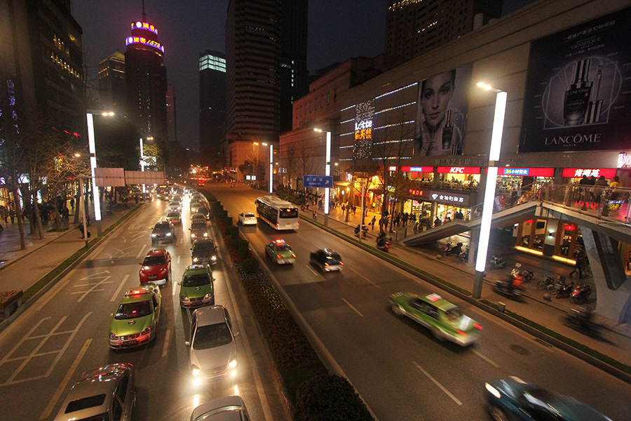 i took the subway from tonghuimen and returned to chunxi road, where i had burger king for dinner and did some shopping (looking for something warm to wear!), buying a fancy gym shirt from H&M for RMB$30 (US$5). i tried taking a bus back to the hotel instead of walking (my poor feet!), but the bus i got on ended up stopping before even reaching the midway point, so i still had to walk, navigating in the dark by feel.