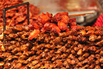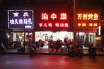 i got back to the hotel around 6:00. i relaxed for about an hour before going back out at 7:00 to look for dinner. i decided not to visit chunxi road tonight, instead getting something to eat in one of the nearby restaurants. i ended up going to a muslim noodle shop when i saw the chef making hand-drawn noodles outside. after dinner i wandered around the neighborhood a little bit more. i took photos of the various restaurants and visited a night produce market. finally i bought a bubble ice tea, some egg custard pastries, and some duck feet.