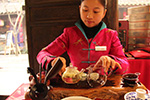 afterwards i took the 42 bus to jinli next to wuhouci. once again, it got me close, but i still had to navigate parts of it, having to traverse the chengdu gym complex, then wander around a public garden before finally getting to wuhouci. i've been to jinli before and i remember it as this fake ancient street without much appeal. how things have changed 7 years later! now i would totally recommend jinli over all other ancient streets in chengdu. they expanded the ancient street and cleaned it up. besides the souvenir shops and bars, there are also a lot of street food with menus in both chinese and english (items were cheap too, average cost RMB$5). i could've stayed here all day, but the highlight was drinking jasmine flower tea and chatting with a tea shop hostess.