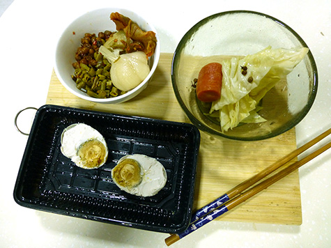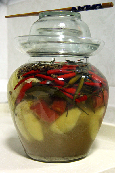 i was eager to try the salted eggs i bought yesterday with my rice porridge. i bought the cheap kind, so the yolk looked a little ugly, but it tasted just the same. it's also been a few days since i last tried my sichuan paocai. today was day 25, more than 4 weeks, twice the normal amount of time (which is just 2 weeks). it was more sour than last time, about a medium sourness level, but i like it even more sour (like sauerkraut sour) so it'll probably be the best in another week. however, i've already eaten close to half, so i'll need to replenish some vegetables (cabbage, carrot).