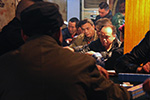 originally i was planning on leaving the house at 8:30, but didn't leave until 9:00. i got up at 7:30 to finally pack my things and clean up the house. in my bag: 3 pairs of sock, 3 pairs of underwear, 1 t-shirt, 1 pair of pants, bag of toiletries, assortment of recharging plugs and stations, 3 packs of tea. because my large bag doesn't have a zipper, it's easy for somebody to just slip their hands inside and pilfer something, as i was warned against pickpockets, who come out in force during the crowded new year. so i came up with a strategy: i'd put everything into one of my large ziploc bags, so they'd have to pull the whole thing out if they wanted to take something, which is impossible.
