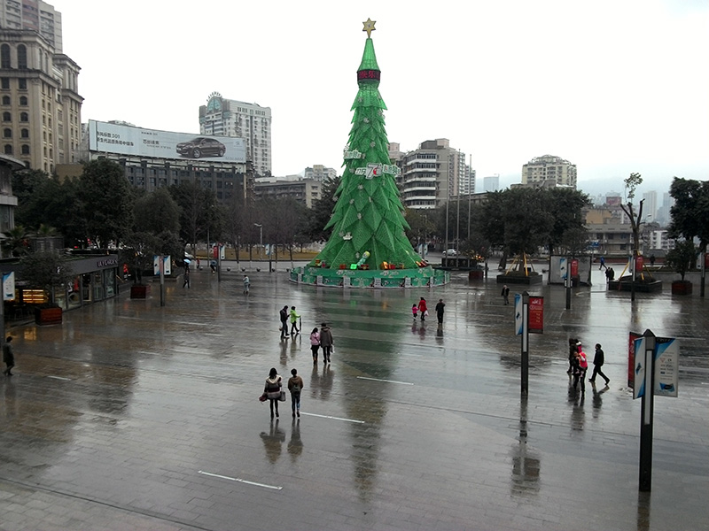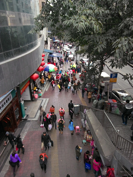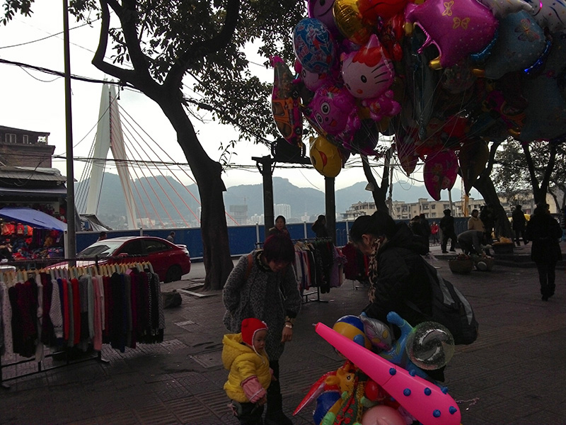 despite that, i still managed to go to chongqing today (it was surprisingly empty, despite chinese spring festival not officially over yet - but most working people have already gone back to work and some are even working on sunday to make it for lost work days) to do some shopping (2 pairs of pants, 3 shirts, an ugly bedsheet set). baihong called me in the early afternoon to apologize that we couldn't meet up since she had some other business to attend to. i had all 4 cameras with me but primarily used my cellphone camera: this was after all a tactical shopping trip, not a photo expedition. but i sort of like the ease of the cell phone camera (8 megapixels), even though the photo quality can't compare to the dSLR. it has a wide focal length though, though i'm not sure what the 35mm equivalent is. the EXIF tag says f/2.2 3.7mm, and if i assume it has similar 7.64 crop factor with the iphone/samsung phone cameras, then the 35mm equivalent is 28mm, which makes sense (coincidentally, 28mm is the canon lens i just bought recently, although on my smaller APS-C dSLR with its crop factor of 1.6 the lens becomes a 44mm lens).