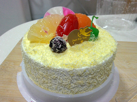* afterwards we walked back to our side of town, but i was having a hard time keeping warm, my body freezing despite just eating. we made a stop at the bakery where xianglian got me a birthday cake (RMB$15). back in my apartment i was excited to try it: mostly cream, with a small cake center.