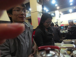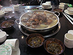 after work the 4 members of the contract team (new guy, mahui, lixiaoli, xianglian) along with lihui came with me to the salt and pepper ribs hot pot restaurant. the place is always packed for dinner and i had to make a reservation yesterday afternoon to make sure we'd be able to eat today. the restaurant decor isn't anything special, and it's actually a little dirty with greasy floors, an a little noisy with local patrons, but apparently the food is very good. i for one thought it was only okay, a big pot of broth stuffed with ribs, lotus roots, and potatoes. my favorite restaurant in all of new changshou is still the chicken parts gan guo across from the gym. mahui, true to her word, pushed for xianglian and i to get together at every opportunity she could get.