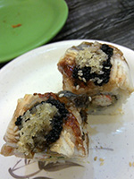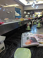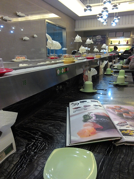 afterwards i went to the sushi restaurant on the top floor of the chongbai department store. i thought maybe it'd be too piggish of me to eat the buffet all by myself so i just had a few plates from the revolving carousel. a plate averaged about RMB$12, a little pricey for just 2 pieces. but they were having a 35% discount, which i didn't know whether it was true or not. i ate 3 plates of sushi for just RMB$24.