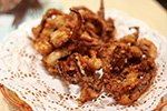 we ended up ordering some fried calamari as an appetizer, a 9" thai pizza (medium size, the largest is 12", the smallest 7.5"), and a shared tall pitcher of cold lemonade. it took a while for the food to arrive, which made sunmeng complain to the waitresses, but before i warned her about angering the waitstaff (anything could happen to our food in the kitchen). the portion for the calamari were tiny, as well as the size of the pizza. sunmeng kept talking so much that she hardly ate. we exchanged office gossip, everything from romeo's slew of illegitimate children, to sunmeng dating one of the koreans in the office and going out to dinner with many of the korean managers. she also told me how each one of them took turns trying to woo her back to the project after she left.