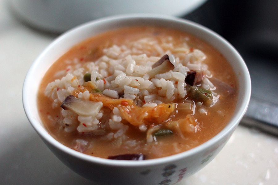 for breakfast, i brought my leftover babao rice porridge from last night.