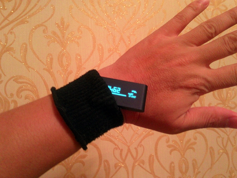 it helps to sleep alone, so nobody is there to judge me when i wear my fitness tracker on my wrist. the withings pulse comes with a velcro sleep bracelet which i don't have and for some reason can't seem to order a replacement online. the past few weeks i've just been using a strap tied to my wrist and the pulse clipped onto that. it's a terrible system because the pulse tends to flop around so it thinks i'm either sleeping lightly or waking up in the middle of the night. then sunday night i came had an idea: i could take an old sock i didn't want anymore, cut off the ankle, and create a simple wristband i could then tuck the pulse inside. i've used it the past 2 nights, it's a much better system.