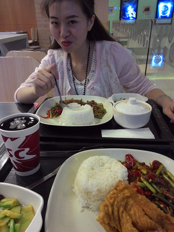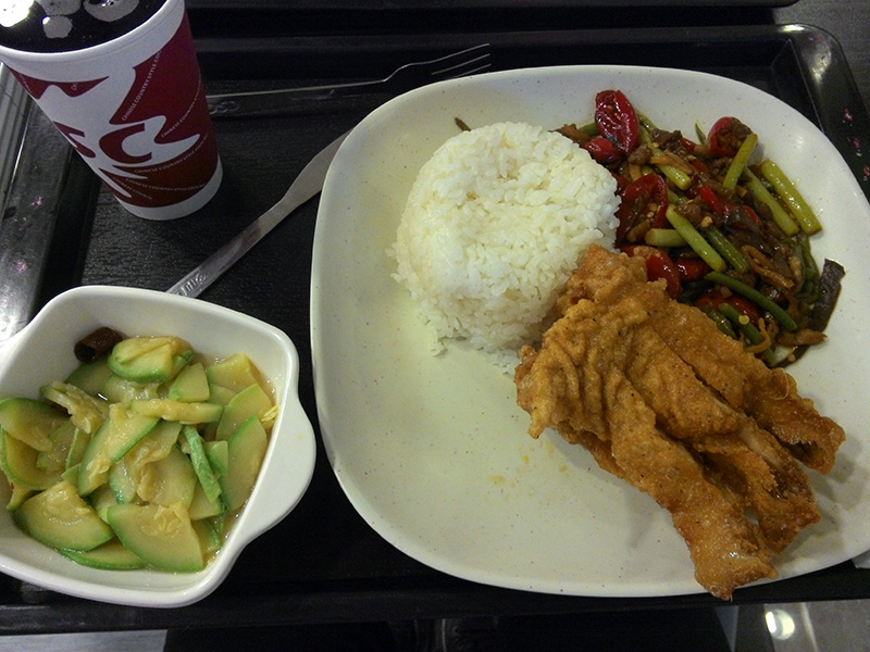 sunmeng didn't get out from work until almost 8:00. i proposed the new maocai place, but we ended up going to CSC inside the mall instead. going to CSC that late meant most of their main dishes were already sold out. i still managed to get some fried chicken with rice - my usual. midway through our dinner sunmeng suddenly had to stop because she felt light-headed, a condition of her low blood pressure and low blood sugar.