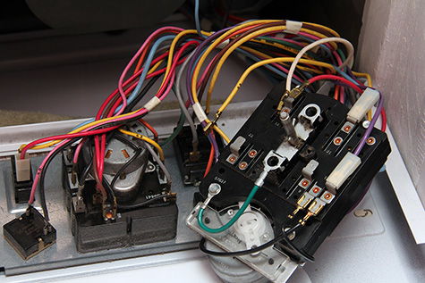 i finally managed to remove the washing machine timer from my stacked washer/dryer control panel. i could see where the two wires came off, but the problem was figuring out which was which (yellow/white). i had a 50% chance of getting it right, but getting it wrong might fry the timer. i then noticed that there were numbers on the timer leads, which corresponded to the colored wires which were also marked. from there it was a simple matter of reattaching leads 6 and 22. however, the bad news was it looked like the timer was already fried when it exploded when i first removed the control panel without disconnecting the power. there was the telltale signature of a small explosion - sooty blast radius and what looked to be melted metal. i'd already seen prices online - $120-150 for a new timer (maytag 22001180). if it's going to bring my washer back to life, it was worth it. but later in the evening when i went to go order the part, i decided to buy a used timer for just $50. if i can't resurrect the washer, then i may to call a professional or even consider buying a new stacked washer/dryer unit (pricey, $1200).